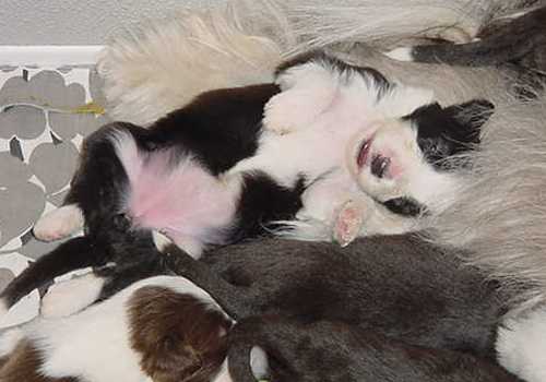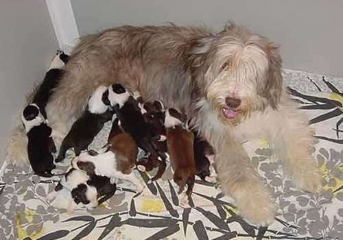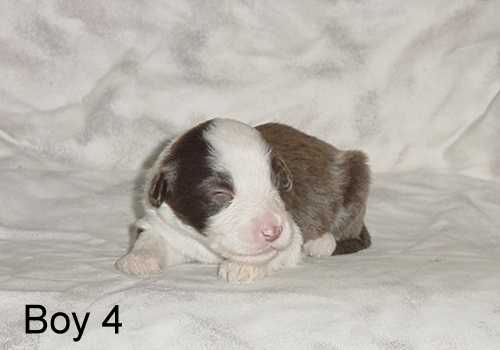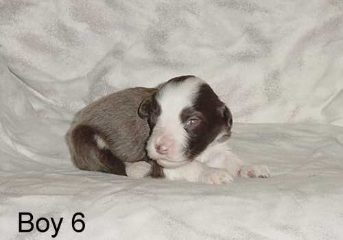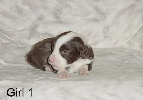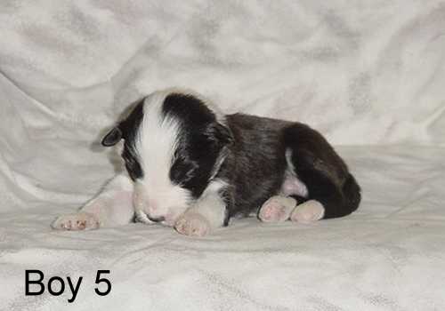 brown boys; two black girls and two brown girls. Ginny and her puppies are