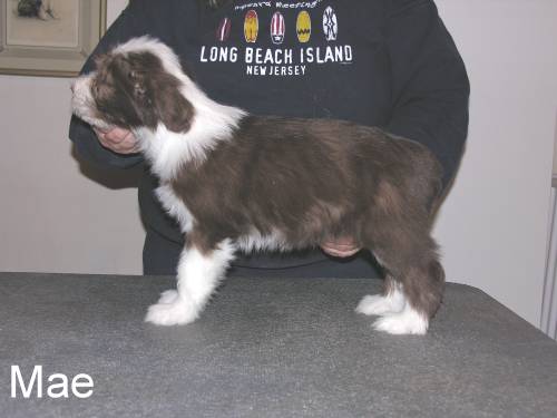 brown boys; two black girls and two brown girls. Ginny and her puppies are