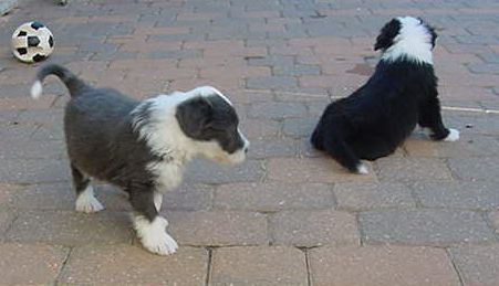 Nike was bred to Skyler in early June. The six puppies were born on August 5, 2004. There are three blue boys and two black boys, along with one black girl.