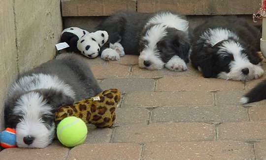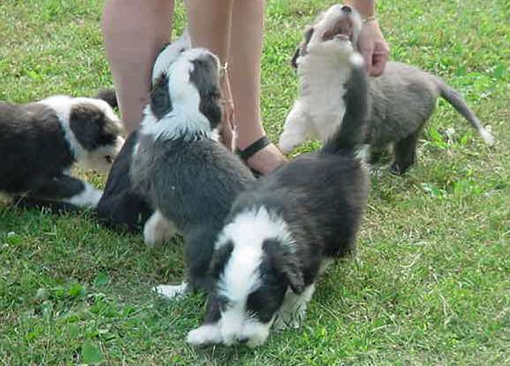 Nike was bred to Skyler in early June. The six puppies were born on August 5, 2004. There are three blue boys and two black boys, along with one black girl.